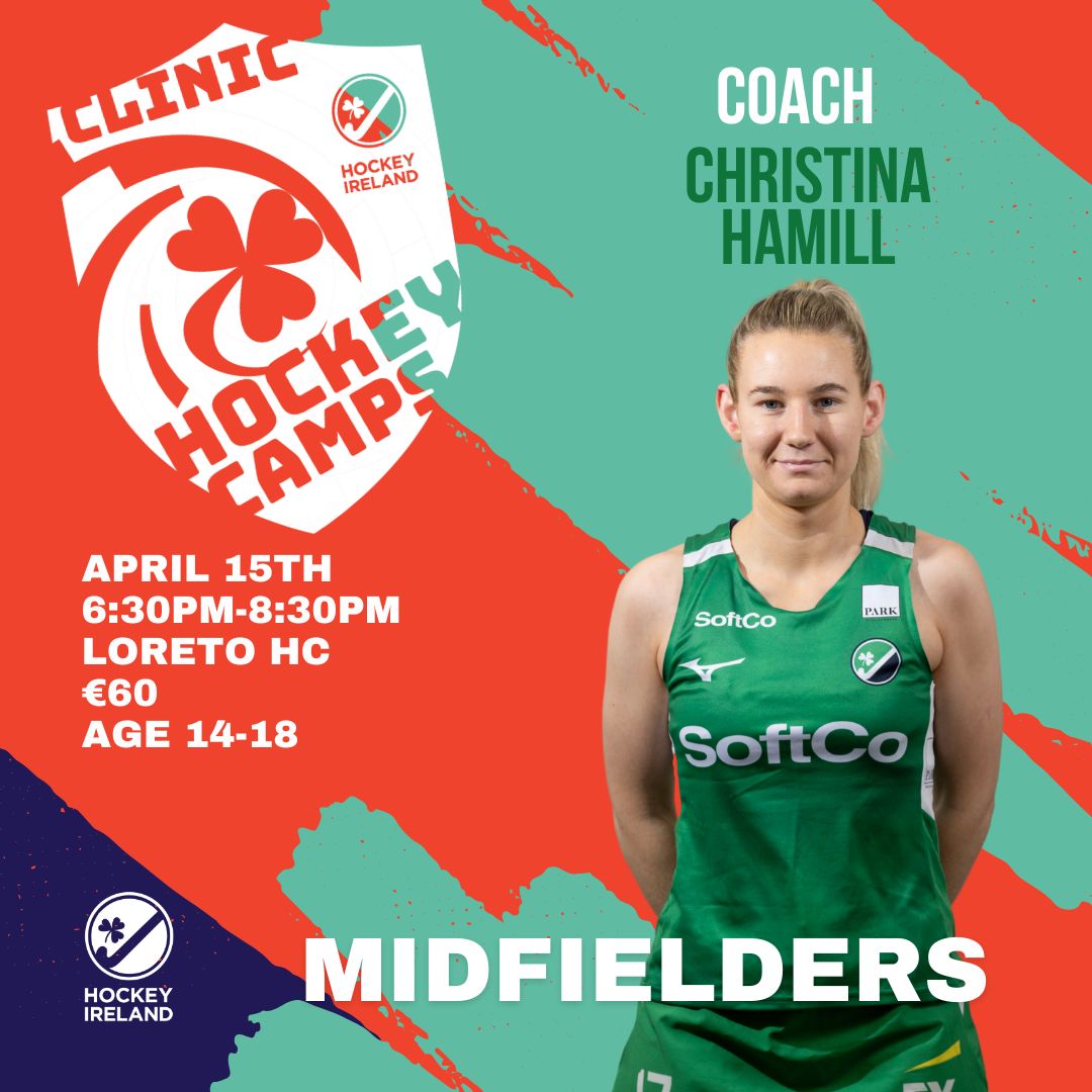Skills Clinic- Midfielders Clinic with Christina Hamill Tuesday 15th April 2025 6:30pm-8:30pm Loreto HC Ages 14-18 Girls and Boys Places Limited