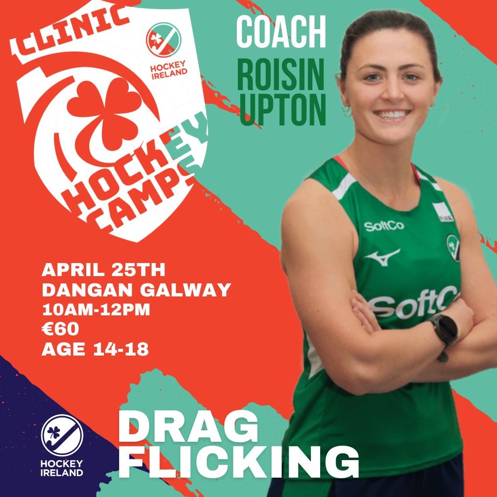 Skills Clinic- Drag-flicking with Roisin Upton Friday 25th April 2025 10am - 12pm Dangan Galway Ages 14-18 Girls and Boys Places Limited |