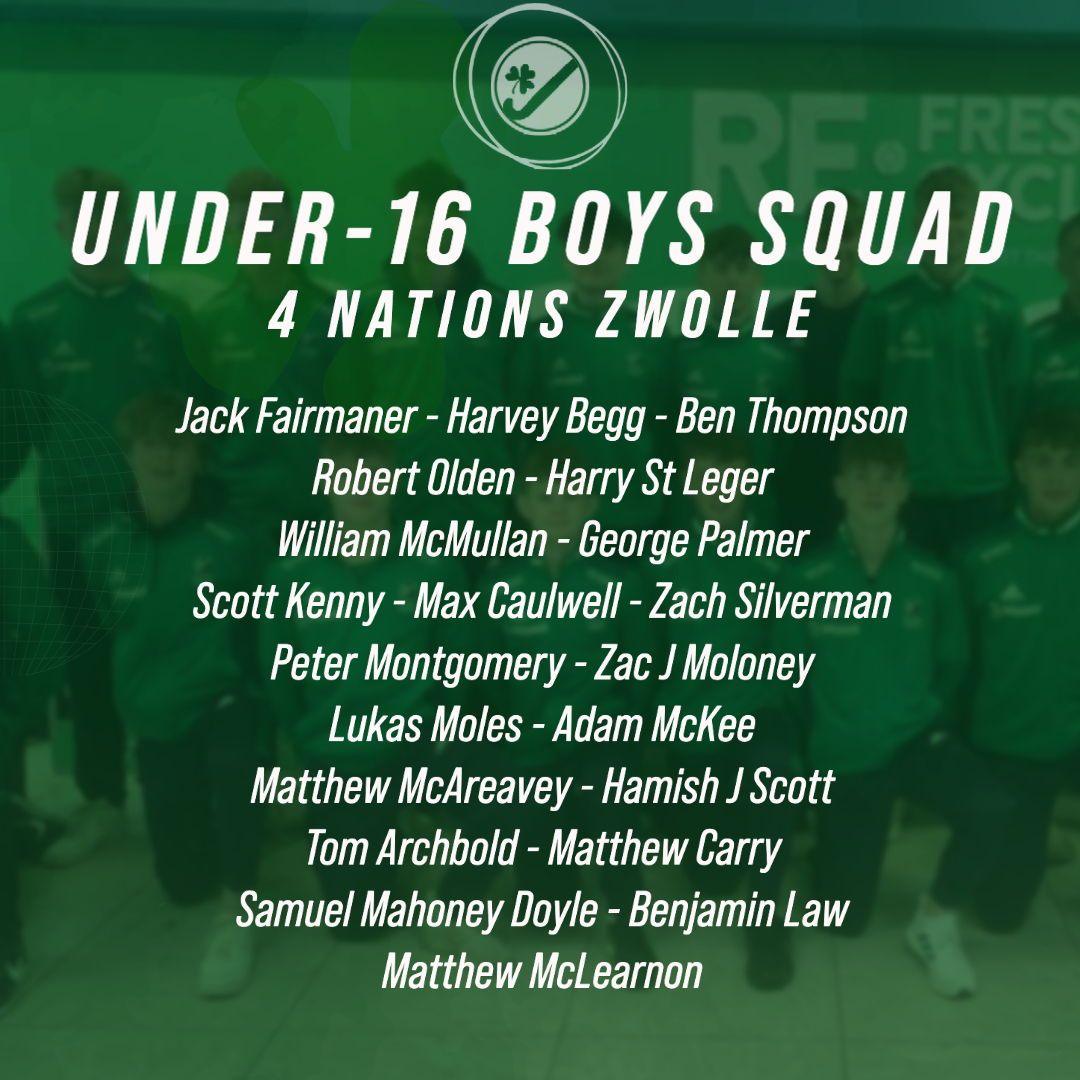 The Irish Under-16 boy’s team are travelling to Zwolle, the Netherlands, for a Four Nations tournament, taking on England, Belgium and the host country from 15th to 17th April.